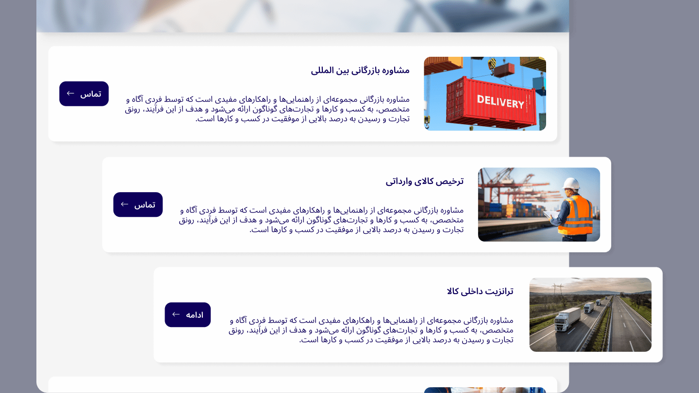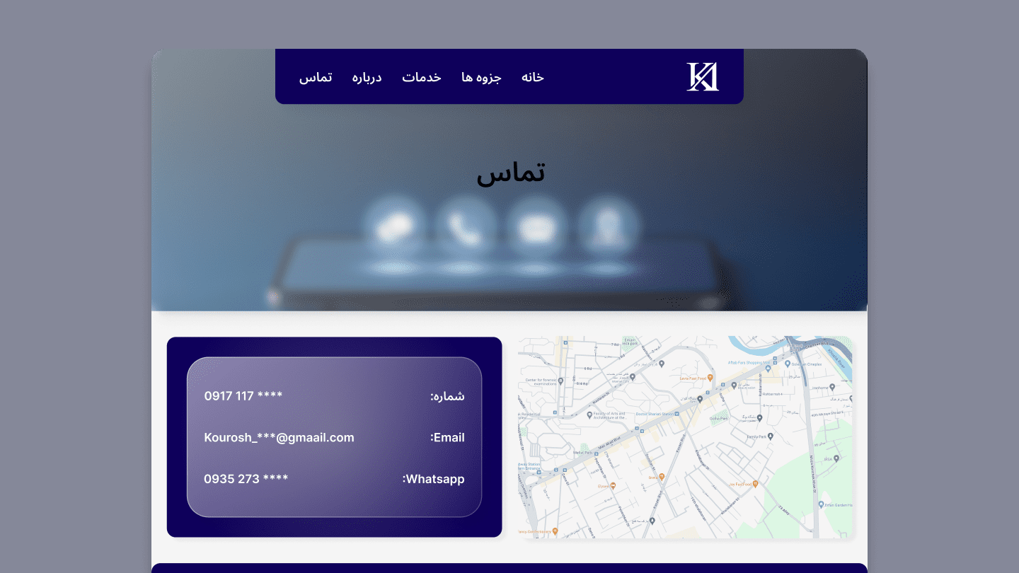 The final design direction stayed intentionally restrained. Rather than relying on heavy visual effects, the interface used spacing, structure, and clean typography to create a professional and readable experience in Farsi. This helped the website feel more credible while keeping the focus on content and usability.