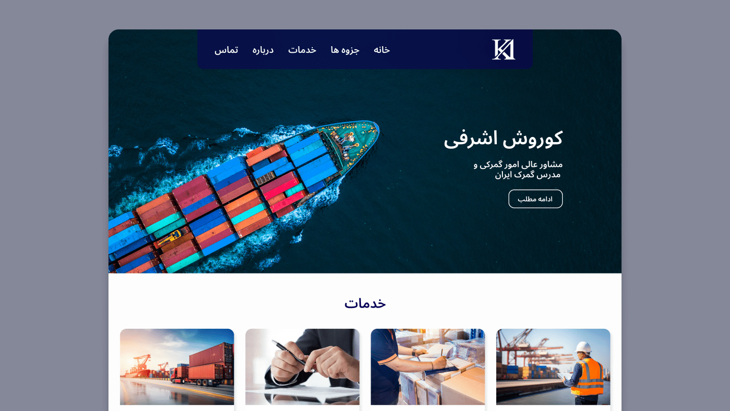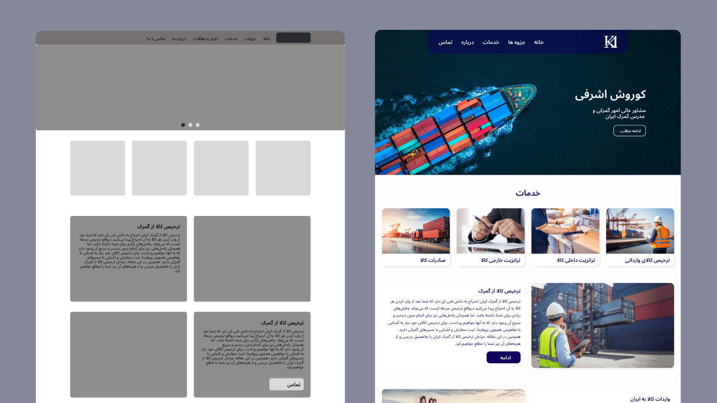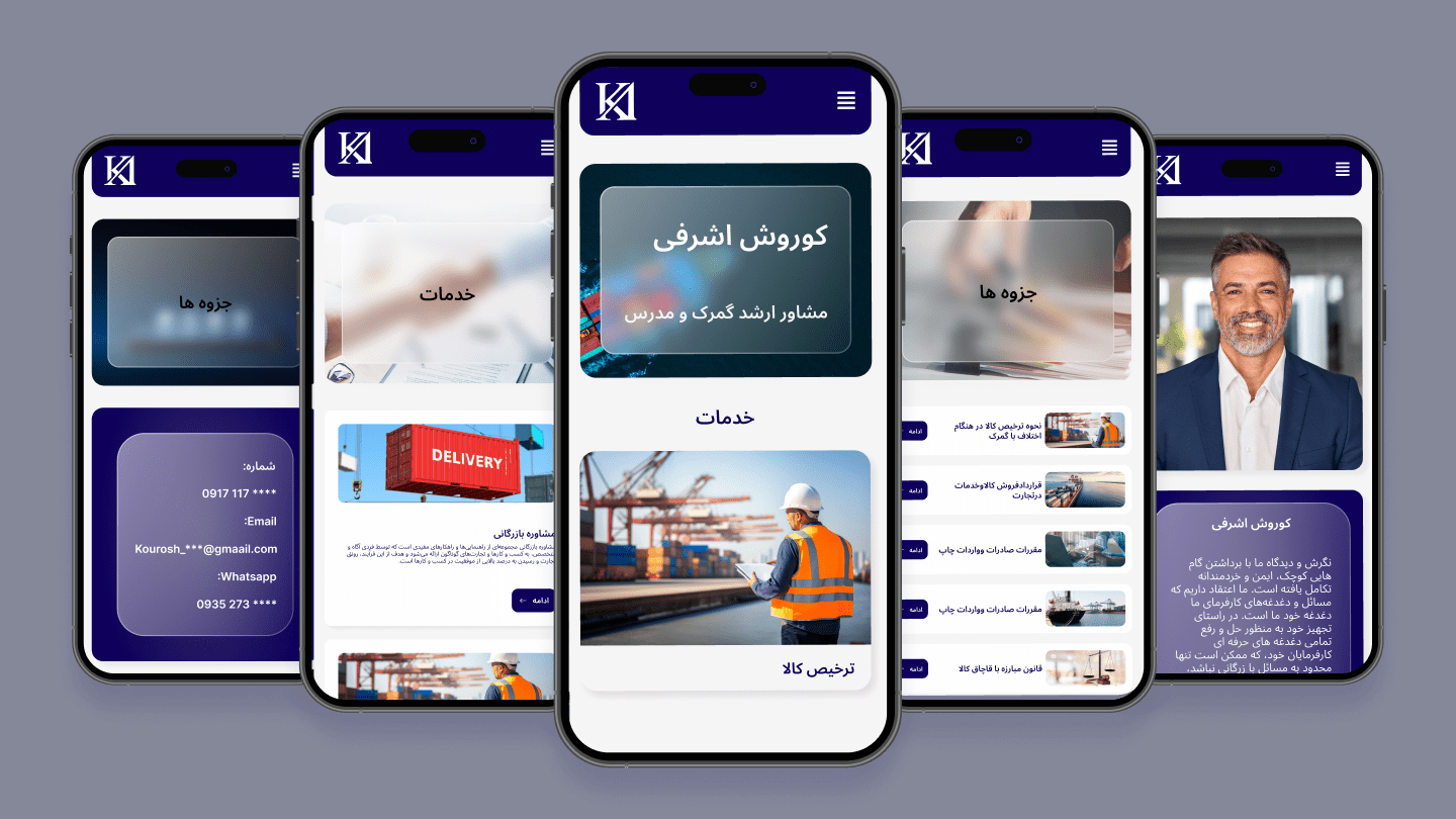 Kourosh Ashrafi is a bilingual website design project created for a customs consultant and university professor. The goal was to design a clean, minimal, and semi-corporate website that could present his professional services while also giving students easy access to course materials and lecture slides.