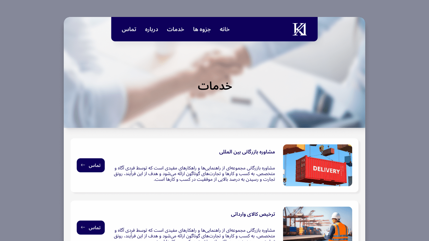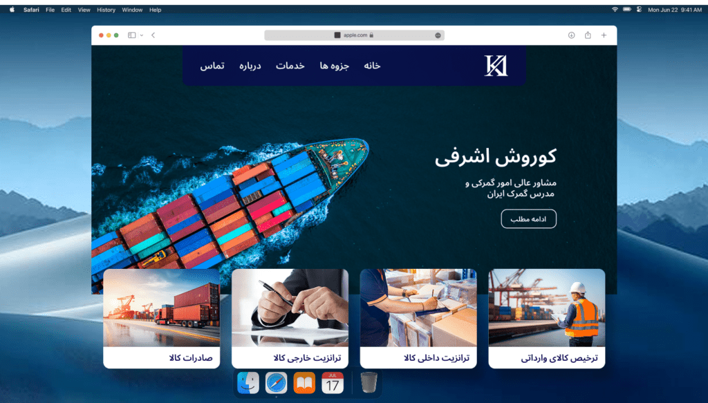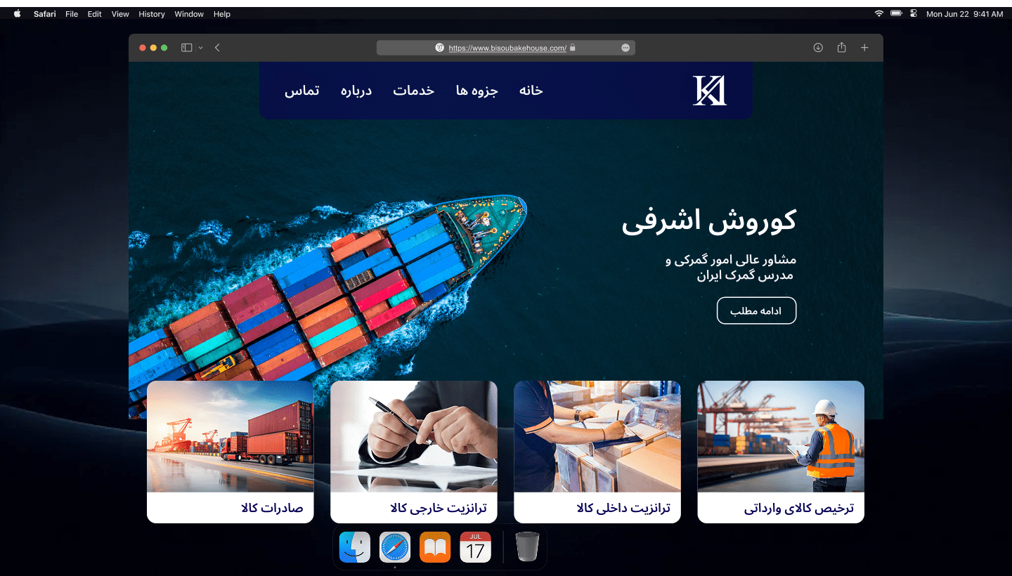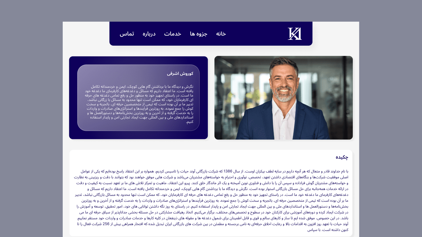 Kourosh Ashrafi is a bilingual website design project created for a customs consultant and university professor. The goal was to design a clean, minimal, and semi-corporate website that could present his professional services while also giving students easy access to course materials and lecture slides.